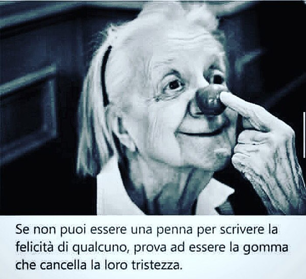 Perché quando sei un clown di corsia impari che magari non puoi essere una penna in grado di riscrivere il mondo, ridisegnare la realtà, progettare un futuro immune dalla tristezza, ma quando indossi il tuo piccolo naso rosso puoi diventare una gomma che anche solo per qualche attimo cancella la tristezza dal volto di chi ti è di fronte”.