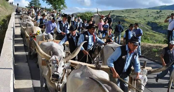 Questa mattina le piante sono state abbattute e saranno trainate in paese da coppie di buoi denominati “parecch”.