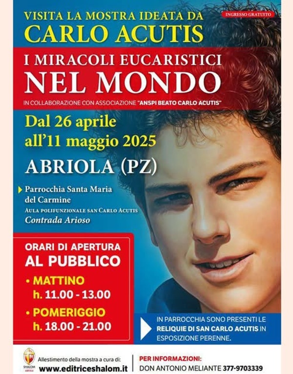 Ideata da Carlo Acutis, sarà esposta nell’aula polifunzionale (nei pressi della chiesa parrocchiale di Santa Maria del Carmine) che porta il nome del Santo.