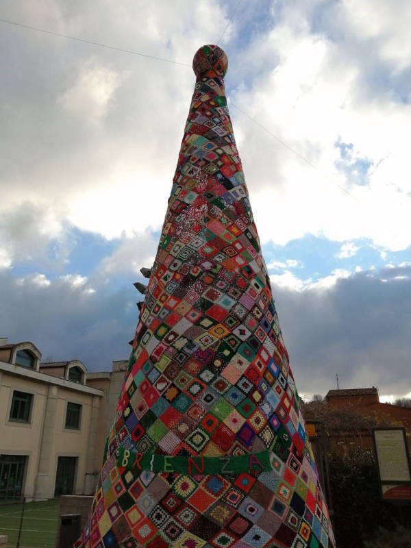 Anche chi non sapeva lavorare all’uncinetto ha fatto comunque la propria parte: molti hanno donato la lana inutilizzata in casa (oppure ne hanno acquistato diversi gomitoli, lasciandoli a disposizione in negozio) che poi i ragazzi del MuLabo sono passati a ritirare per consegnarla alle valenti sferruzzatrici; per non parlare infine di coloro che hanno partecipato alla fase dell’assemblaggio e all’allestimento dell’albero, issato nelle ultime ore in piazza.