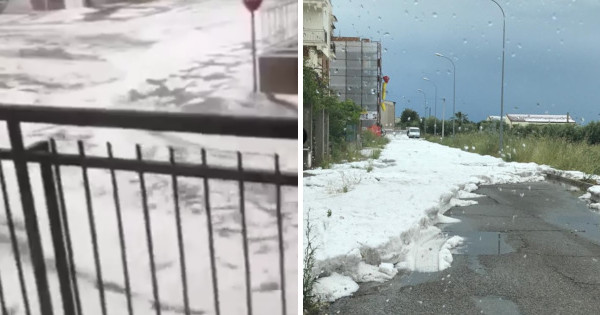 Grandine di grosse dimensioni ha letteralmente imbiancato le strade e allagamenti importanti hanno messo in seria difficoltà la zona.