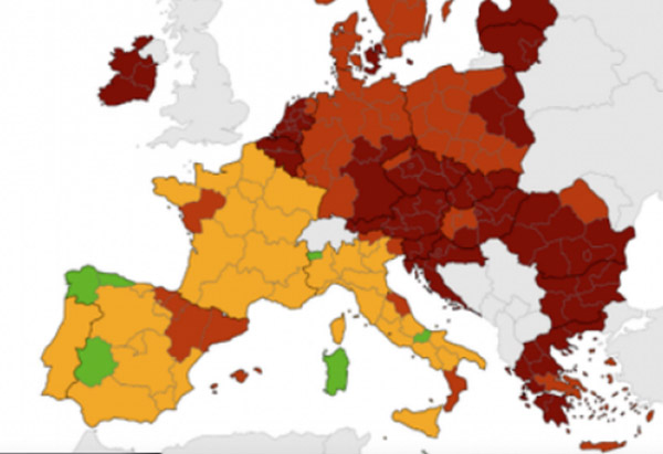 Secondo il Centro europeo per la prevenzione e il controllo delle malattie la situazione è peggiorata per l’Italia a tal punto che 4 regioni italiane sono ora rosse, colore che sta a indicare un alto pericolo di diffusione del Coronavirus.