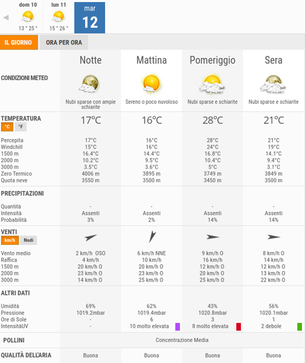 Martedì 12 Luglio avremo cieli in prevalenza poco nuvolosi, salvo variabilità dal pomeriggio, non sono previste piogge.