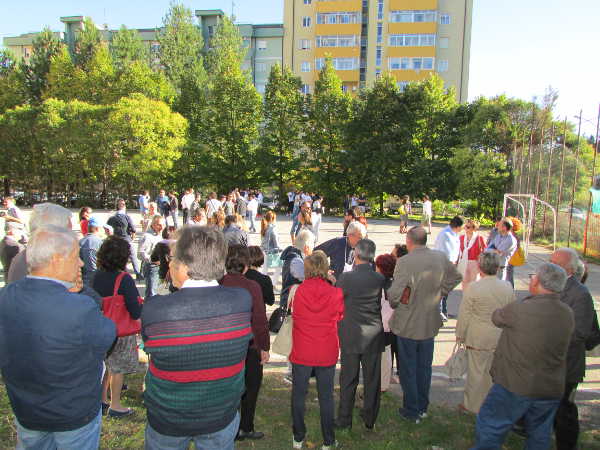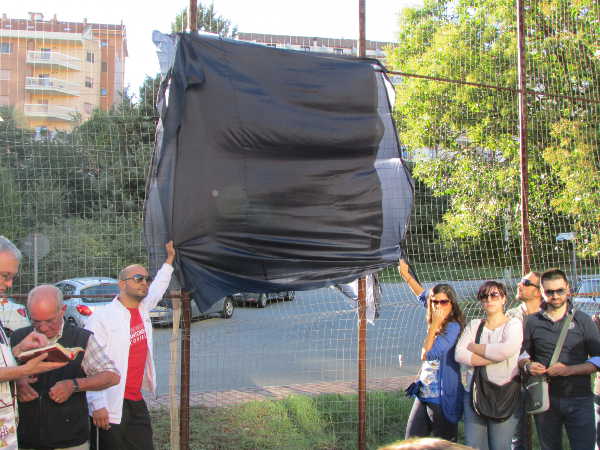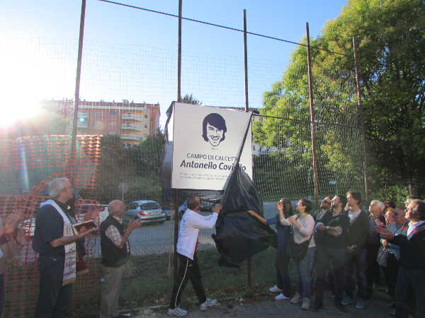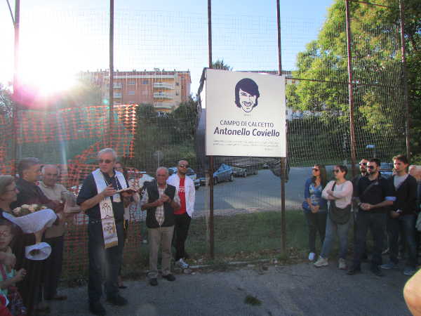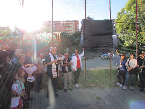 Proprio qui, fra la commozione dei presenti e soprattutto dei genitori, è stata scoperta e poi benedetta la targa in suo onore (esposta sulla recinzione del campetto) sulla quale è possibile leggere: