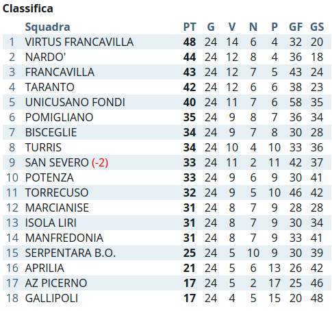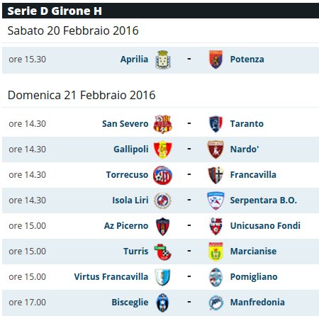 Ecco di seguito tutte le partite della 25esima giornata della serie D girone H e la classifica.
