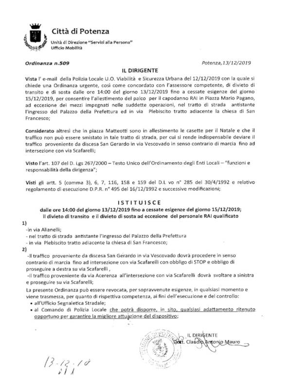 Potenza, si avvicinano i festeggiamenti per Natale e fine anno! Convocato il Comitato provinciale per l’ordine e la sicurezza pubblica
