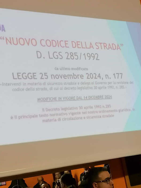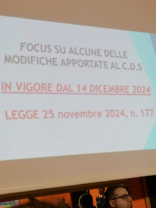 Domenica 02 Marzo 2025 interessante conferenza sulle nuove normative del codice stradale.