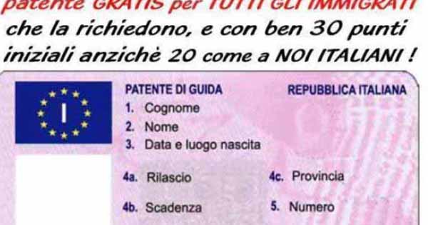 “Mentre eravamo tutti distratti dalla tragedia del terremoto, proprio ieri il Senato ha approvato – con ben 303 voti a favore e solo 116 contrari – la modifica dell’art. 126 ter del codice della strada, che prevede l’ottenimento della patente GRATIS per tutti gli immigrati che la richiedono, e con ben 30 punti iniziali anziché 20 come NOI ITALIANI”.