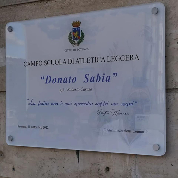 Questo pomeriggio abbiamo intitolato il Campo scuola di atletica leggera a Donato Sabia, campione olimpionico ( l’unico atleta italiano della storia ad aver raggiunto la finale olimpica degli 800 metri piani per due volte consecutive) e colonna portante dell’ufficio Sport del Comune di Potenza, prematuramente scomparso nel 2020 a causa del maledetto Covid.