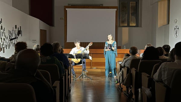 Yuri Santangelo è un giovane chitarrista fiorentino, classe 2000, vincitore di numerosi premi tra cui il terzo premio al Concorso Internazionale “Premio Angelo Gilardino” di Lagonegro nel 2023, secondo al “International Florence Guitar Competition Alvaro Company”, primo premio al “Concorso Chitarristico Nazionale Giulio Rospigliosi” e primo assoluto al “Chitarra verde” e “Davide Lufrano Chaves”. Dafne Colombo, stessa classe di nascita di Santangelo, violinista e soprano, ha studiato al Conservatorio “G. Verdi” di Como e al Conservatorio della Svizzera italiana. Ha preso parte a diversi concerti in diverse formazioni cameristiche sia come cantante che come violinista, collaborando con orchestre e cori.