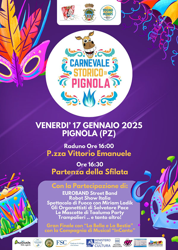A rendere particolarmente orgoglioso il popolo di Pignola è il fatto che anche quest’anno il suo Carnevale è stato definito “Carnevale Storico d’Italia” insieme ad altri Carnevali blasonati.