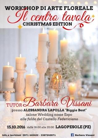 Dalle ore 18,00 presso il Salone Wedding Nozze EXPO Barbara Vissani, con la collaborazione di altre 20 donne del pubblico e di Biggie Best Potenza, realizzerà degli addobbi natalizi.