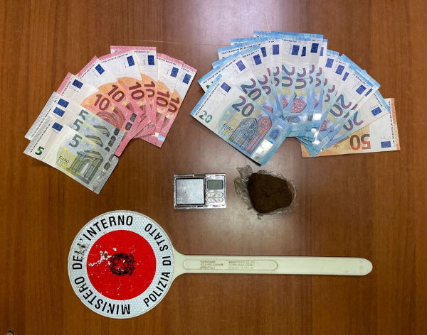 La successiva perquisizione personale permetteva di rinvenire e sequestrare 49,18 grammi di sostanza stupefacente del tipo hashish, che il soggetto occultava nelle parti intime, un bilancino di precisione e la somma di € 485,00 in banconote di diverso taglio.