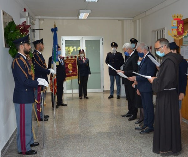 Alla deposizione della corona è seguito un momento di preghiera officiato dal Cappellano della Polizia di Stato Padre Alberto Rosciano.