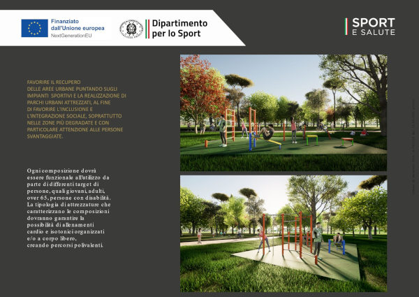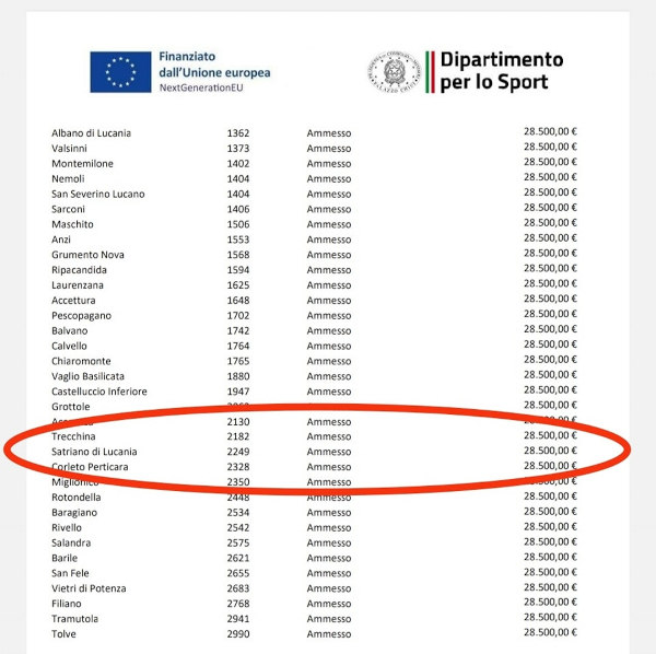 Il Comune di Satriano di Lucania è stato ammesso alla linea di intervento PNRR, “SPORT E INCLUSIONE SOCIALE”, che finanzia la realizzazione di parchi e percorsi attrezzati per la pratica sportiva all’aria aperta.