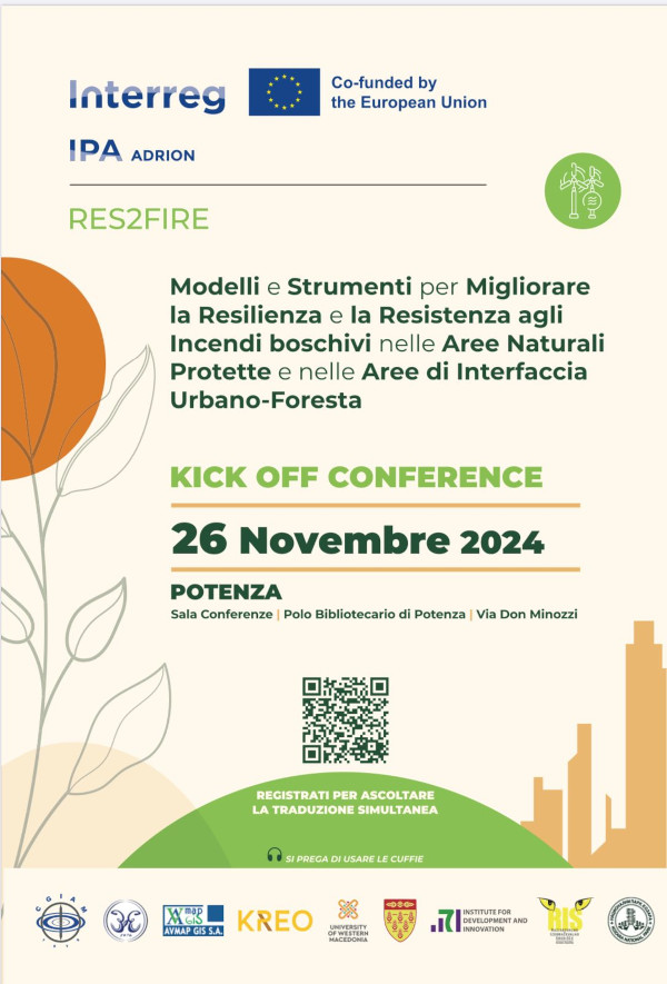 Si tratta di un kick-off meeting del progetto europeo ‘RES2FIRE’, appunto, condotto dal Centro di Geomorfologia Integrata per l’Area del Mediterraneo (CGIAM), in qualità di capofila, assieme a un partenariato internazionale costituito da enti, istituzioni e centri di ricerca di sette Paesi dell’area Adriatico-Ionica, quali: