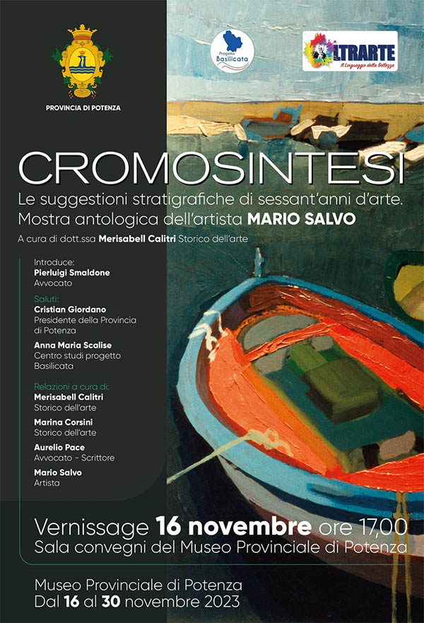 Al via la terza mostra personale della Rassegna d’arte contemporanea di Potenza, curata dalla dott.ssa Merisabell Calitri, storico dell’arte, con il patrocinio della Provincia di Potenza e la collaborazione dell’associazione OltrArte e del Centro Studi “Progetto Basilicata”.