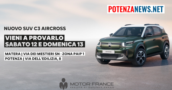 La sede Citroën – Motor France di Potenza sarà aperta sabato 12 e domenica 13 aprile, per scoprire la nuova generazione della C3 Aircross, che offre una configurazione a 7 posti e una motorizzazione multi-energy.