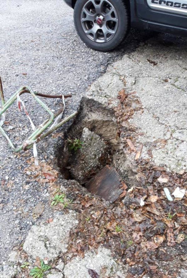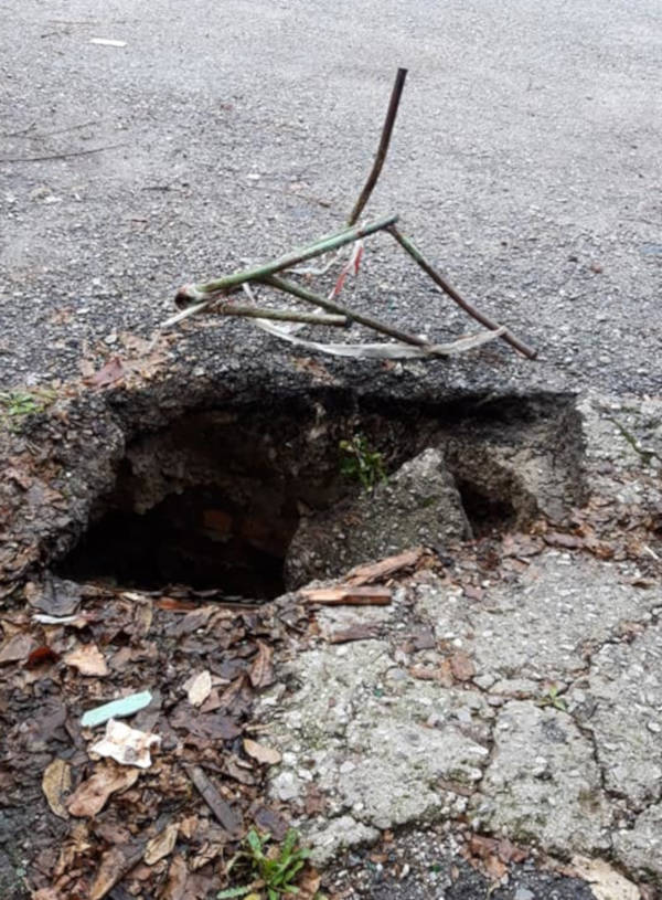 “Altre voragini presenti in città, questa davanti la Scuola dell’Infanzia di Via La Cava, Rione Lucania.