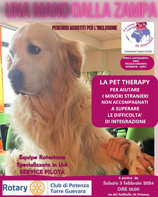 Il club Rotary Torre Guevara di Potenza, promuove un service pilota sugli interventi assistiti con gli animali (IAA), meglio conosciuti con il termine ‘Pet therapy’.