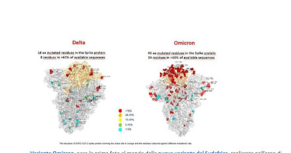 Omicron ha molte più mutazioni di Delta (già molto variata), concentrate in una zona che interagisce con le cellule umane.