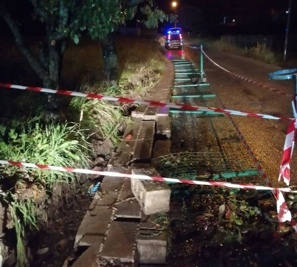 “in contrada Melara, un cittadino è rimasto bloccato a causa del nubifragio ed un muro di recinzione si è abbattuto sul manto stradale occupando una parte della carreggiata.