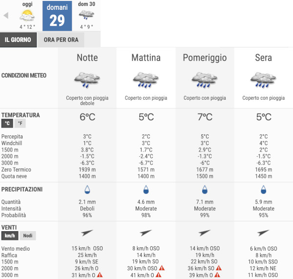 La temperatura massima registrata pare che sarà di 9°C, la minima di 4°C.