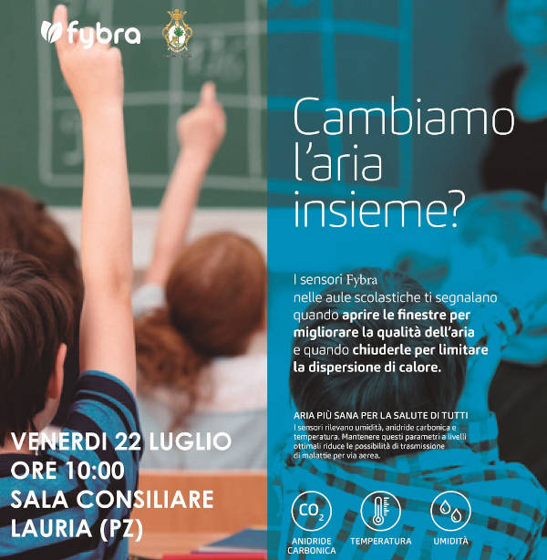 L’Amministrazione lauriota insieme agli uffici comunali ha ritenuto utile l’installazione -nelle aule delle scuole materne, primarie e nell’asilo nido di Lauria- dei sensori che rilevano umidità, anidride carbonica e temperatura della startup innovativa Fybra, società di cui è co-founder e Ceo il concittadino Gaetano Lapenta.