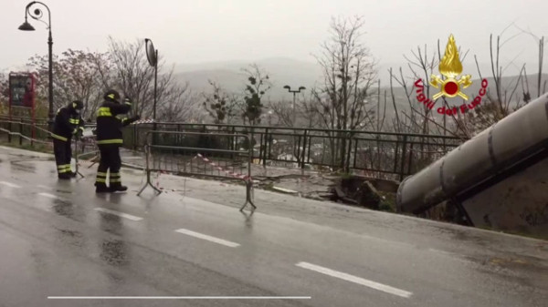 A scopo precauzionale è stato istituito il doppio senso di circolazione su una sola corsia, i VV.F. hanno provveduto alla messa in sicurezza della zona interessata.