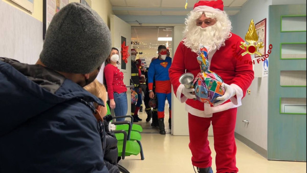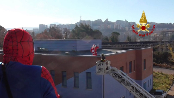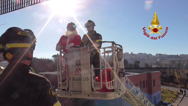 In particolare, i Vigili del fuoco nell’ambito dell’attività esercitativa alle ore 10,30, hanno prestato soccorso a Babbo Natale che, con il suo sacco di doni, è stato tratto in salvo e poi portato sul terrazzo del reparto, mentre i piccoli degenti dietro le finestre delle proprie camere hanno assistito alle operazioni di recupero e ricevere successivamente dei doni.