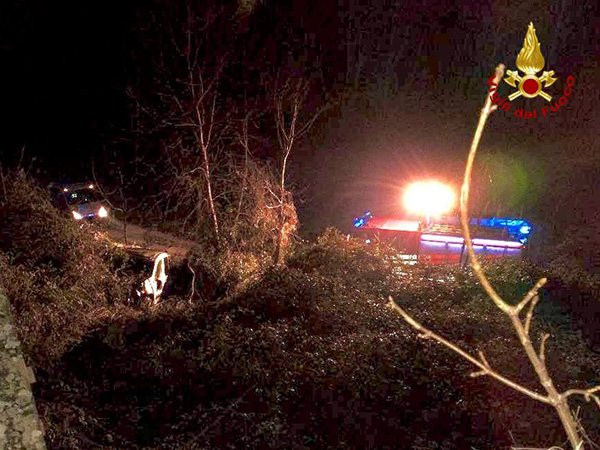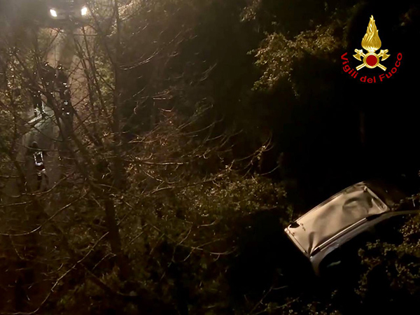 La caduta del veicolo è stata fortunatamente attenuata dalla fitta vegetazione sottostante.
