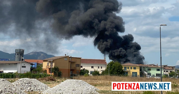 Vasto incendio nella zona artigianale di Tramutola all’ingresso della zona urbana di Villa d’Agri.