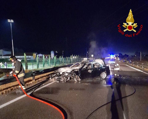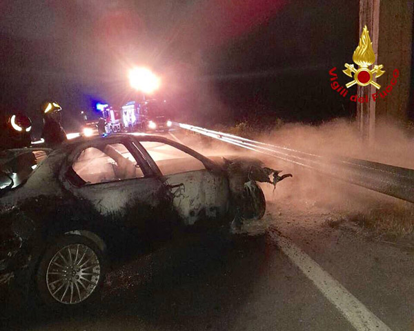 I Vigili del Fuoco all’arrivo sul posto hanno trovato un’autovettura che a seguito di incidente stradale, per cause in corso di accertamento da parte dei Carabinieri di Viggiano, si è incendiata.