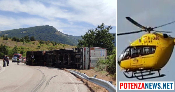 L’autista è riuscito ad uscire da solo dal veicolo ribaltato ma per le ferite riportate è stato trasportato in ospedale in eliambulanza presso l’ospedale San Carlo di Potenza.