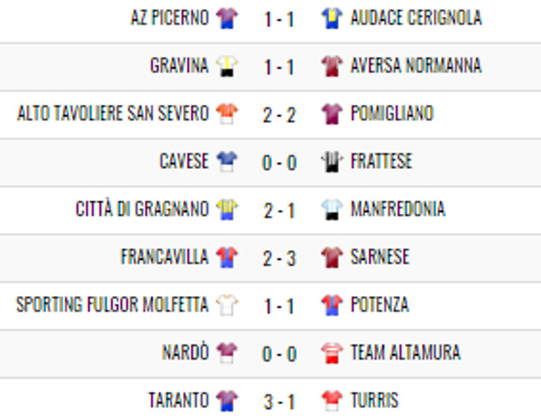 Questi i risultati e la classifica.