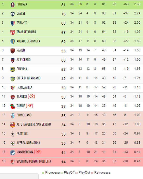 Un risultato simbolico per il Potenza che ormai è ufficialmente in Serie C e può godere del meritato riposo.