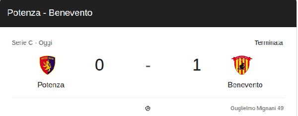 Sconfitta per il Potenza Calcio contro il Benevento.