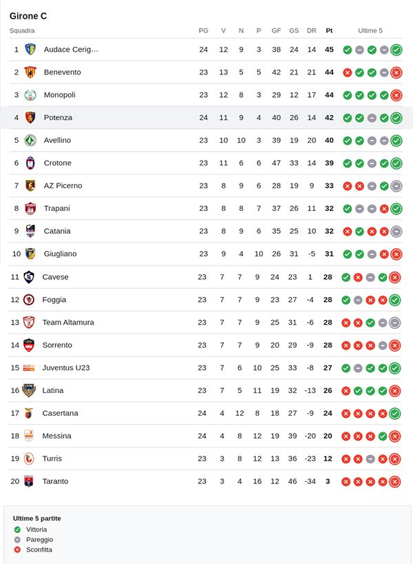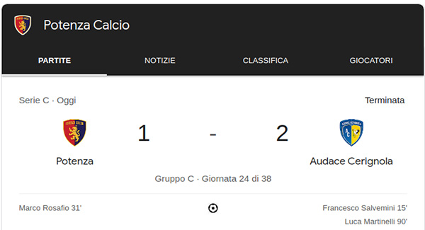 Si è chiusa poco fa la partita tra il Potenza Calcio e l’Audace Cerignola.