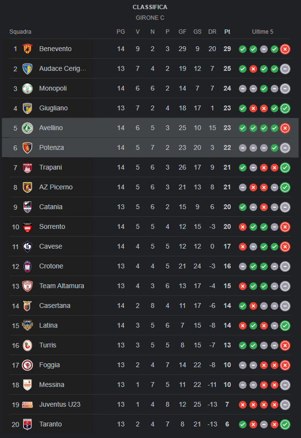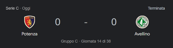 Si è chiusa poco fa la partita tra il Potenza Calcio e Avellino.