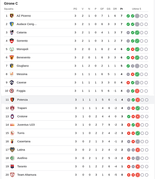 Si è chiusa poco fa la partita tra il Benevento e Potenza Calcio.