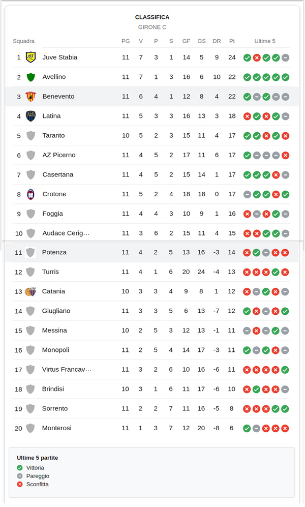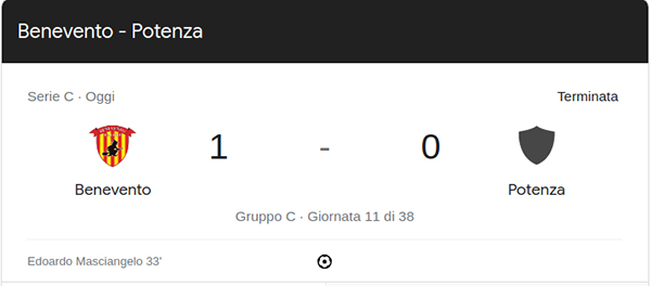 Si è chiusa poco fa la partita tra il Potenza Calcio e il Benevento.