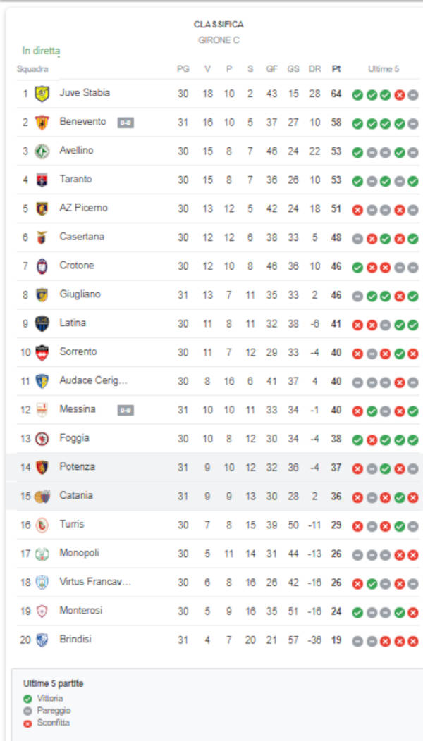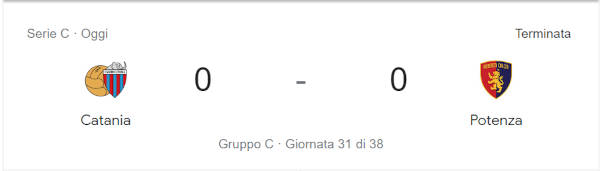 Si è chiusa poco fa la partita tra il Potenza Calcio e il Catania.