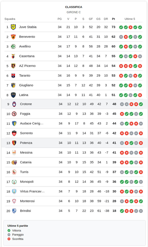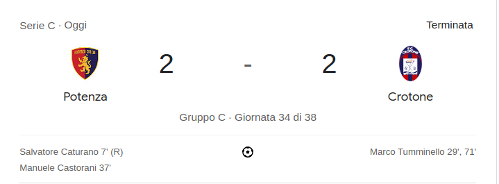 Si è chiusa la partita tra Potenza Calcio e Crotone.