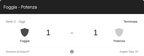 Si è chiusa poco fa la partita tra Foggia e Potenza.