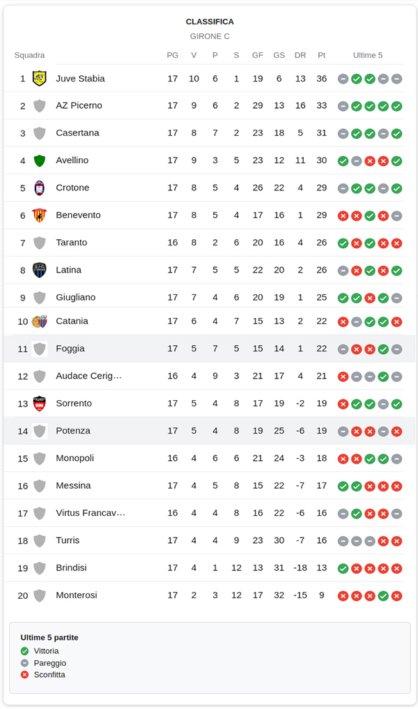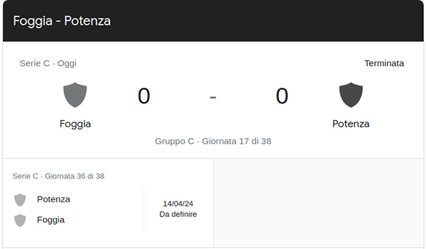 Nella 17° giornata di Serie C Now 2023/24, pareggio a reti inviolate del Potenza contro il Foggia.