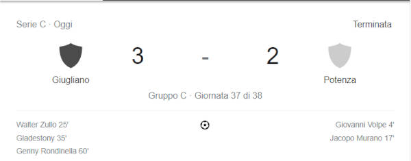 Si è chiusa poco fa la partita tra Giugliano e Potenza.