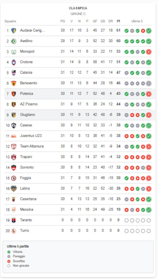 Si è chiusa poco fa la partita tra il Potenza Calcio e il Giugliano