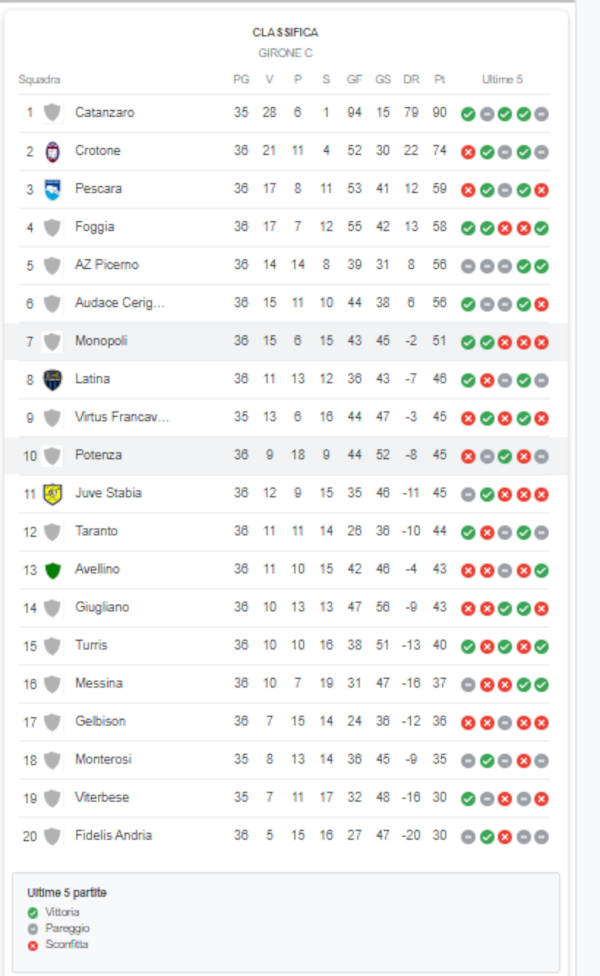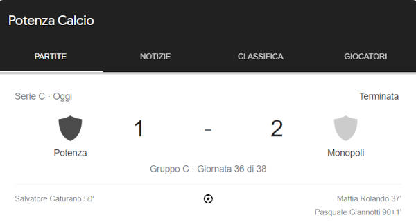 Si è chiusa poco fa la partita tra Monopoli e Potenza.