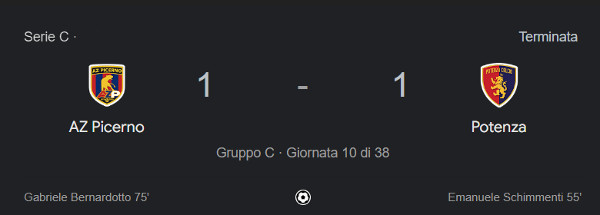 Si è chiusa la partita tra il Picerno e il Potenza Calcio