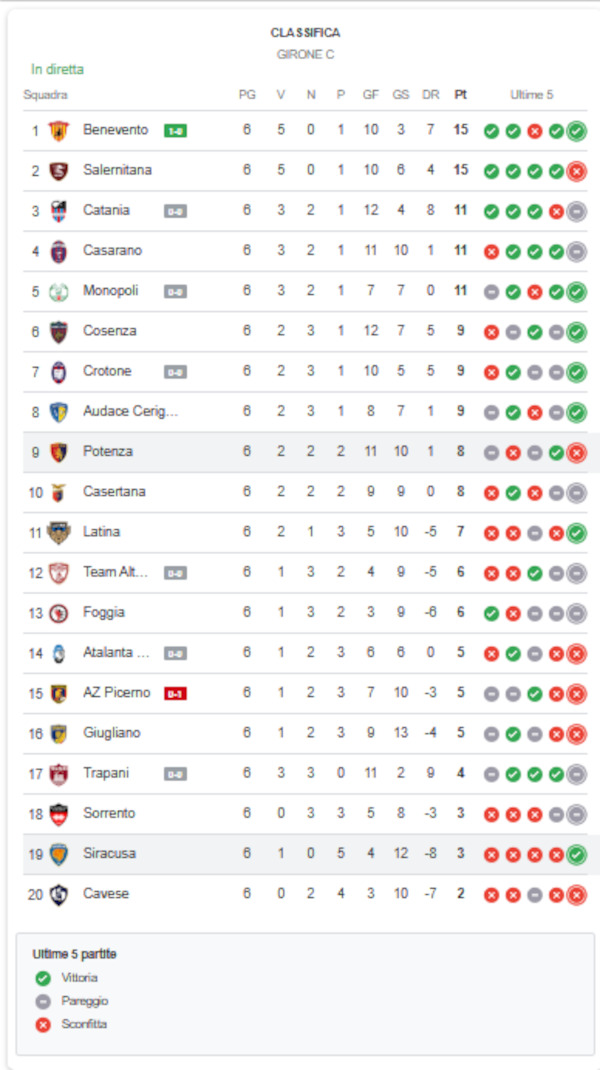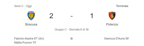 Si è chiusa poco fa la partita tra Potenza Calcio e Siracusa.
